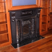 Классический стильный камин с кирпичной кладкой внутри, облицованный камнем, —идеальное решение для загородного дома или дачи. Выполненный в светлых пастельных тонах, он впишется в любой интерьер. В качестве дополнительного акцента дизайнером используется изящная кованая подставка под каминные аксессуары. Наряду с этим проектом Вы сможете заказать у нас изготовление монолитных лестниц, оформление бильярдных, создание авторских дизайнов интерьеров.